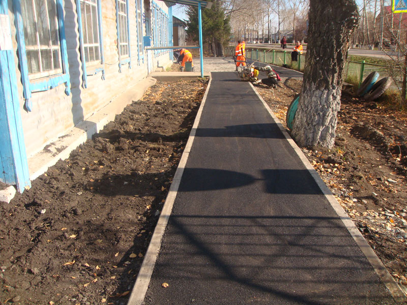- толщина слоя асфальтового покрытия: тротуар 4-5см, проезд или парковка легкового автомобиля 6-8см, дорога для грузового транспорта 9 -13см.