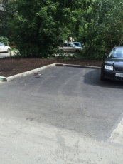 По краям парковки устанавливаются дорожный бордюр БР 100*30*15. Бордюрный камень ставят на бетонную подушку и с 2 сторон делают бетонный замок. Для монтажа бордюра применяют бетон м-200 (В15). Если не установить бордюр, то уложенный асфальт будет по краю отламываться и парковка начнет со временем разрушаться. Помимо разрушения бордюр предотвращает выкатывание машины за пределы парковки, на газон или детскую площадку.